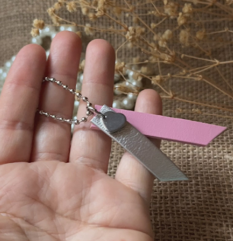 Porte-clefs ou bijou de sac au duo de cuirs, coloris au choix, personnalisable par le choix du charme et la possibilité d'une gravure. Un cadeau femme ou homme ou couple à faire graver de vos mots doux.