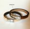 Pulsera para hombre con pieza central de metal trenzado sobre un dúo de pieles leonadas forradas de cuero marrón oscuro.