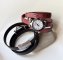 Elija el color del cuero entre 20 colores: uno clásico o de moda, luego la esfera de bronce (números romanos o arábigos), el cierre y si lo desea elija grabar la correa de cuero, en el lado visible o en el interior para un mensaje secreto. ► CIERRE Y TALLA La correa del reloj está hecha con un cierre de gancho de acero inoxidable (por defecto) que tiene la ventaja de ser fácilmente ajustable (se proporciona una pequeña explicación para indicar cómo abrir el cierre), muy práctico cuando no se conoce el tamaño exacto de la muñeca. La correa se suministra para un tamaño máximo de muñeca de 18 cm, a menos que especifique un tamaño) ► PERSONALIZACIÓN POR GRABADO Personalice este reloj eligiendo grabar un mensaje personal y único en la correa. El grabado en cuero oscuro o negro es muy discreto y es claramente visible para los colores claros.